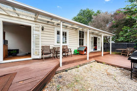 The kitchen leads outdoors onto the multi-functional deck area for your enjoyment and practicality. The home of three bedrooms (or two bedrooms and two living) also offers one bathroom with a separate toilet. The heat pump and carport add to the conveniences on offer at this delightful cottage.