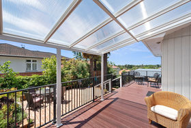 Let us walk you through the door; into the covered, secured patio area leading to the elevated deck overlooking the city as far as the eye can see! Enter the open plan living area by stepping onto the lush new carpet where the large windows enhance the view. The remodelled kitchen is adjacent and in true English style, here you will find your laundry hidden away behind a cupboard, and a quaint back porch.